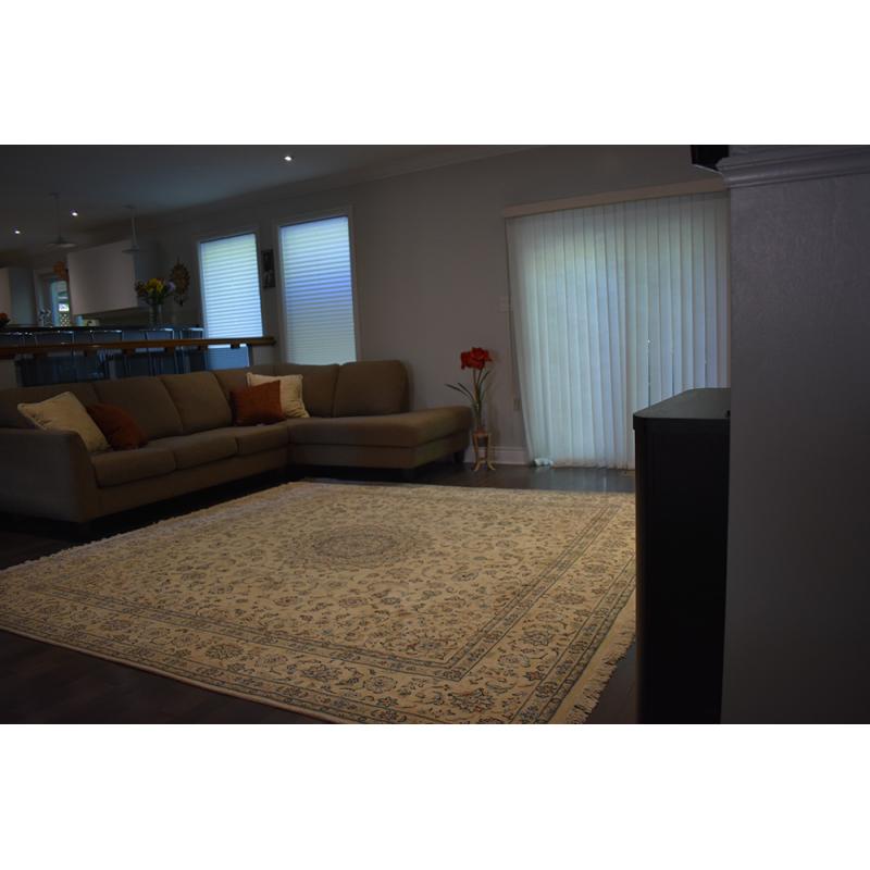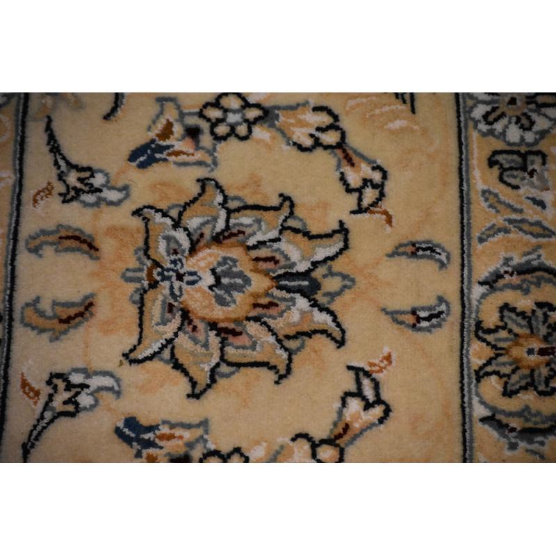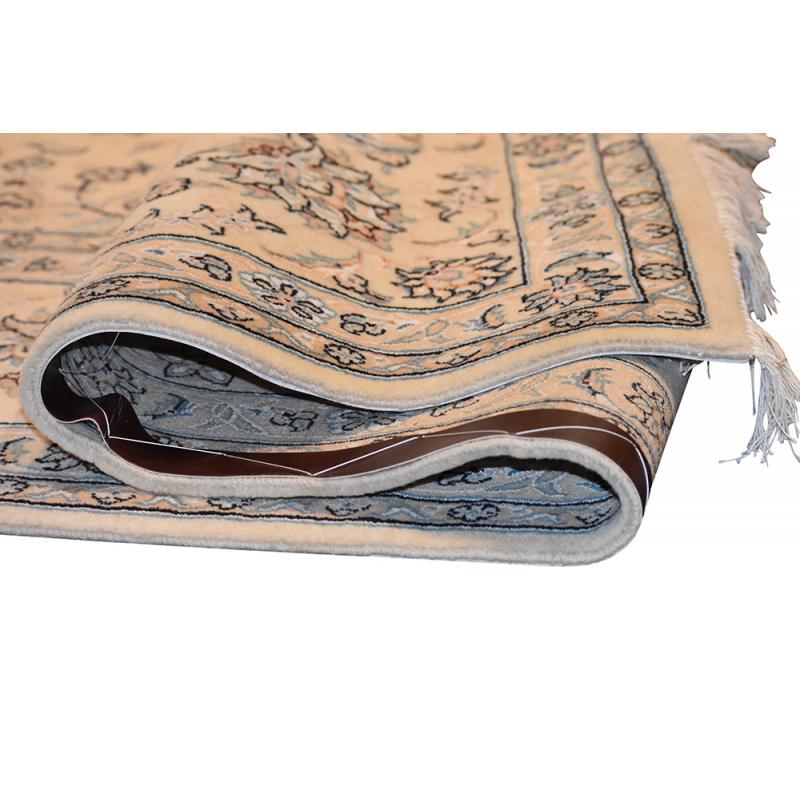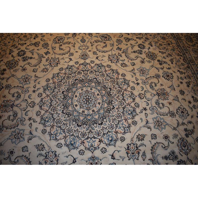 Finely handmade and hand knotted Persian Nain, tone on tone rug signed by Habibian in central medallion design, made by baby lam wool and silk to add a sophisticated finish to stylish interiors. Its timeless pattern and central medallion design will add elegance to both traditional and country schemes. This pure wool traditional rug is a completely unique design in cream and blue color and goes well with any schemes. This is sized at 10’ x 10’ ft.